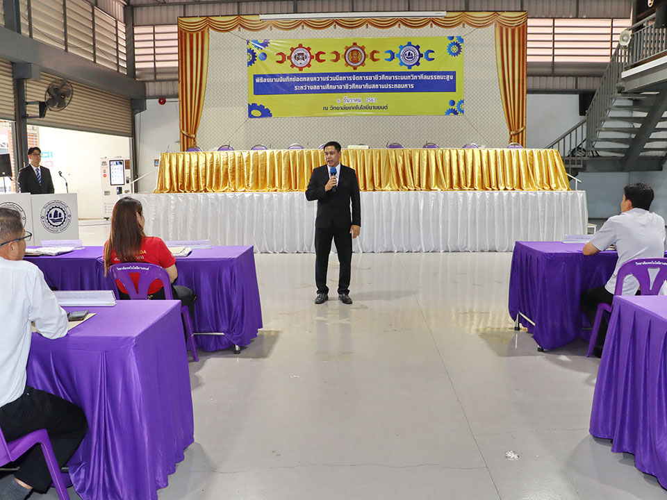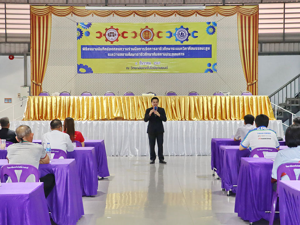 บรรยากาศ พิธีลงนามบันทึกข้อตกลงความร่วมมือ การจัดการอาชีวศึกษาระบบทวิภาคี เมื่อวันที่ 6 ธันวาคม 2567