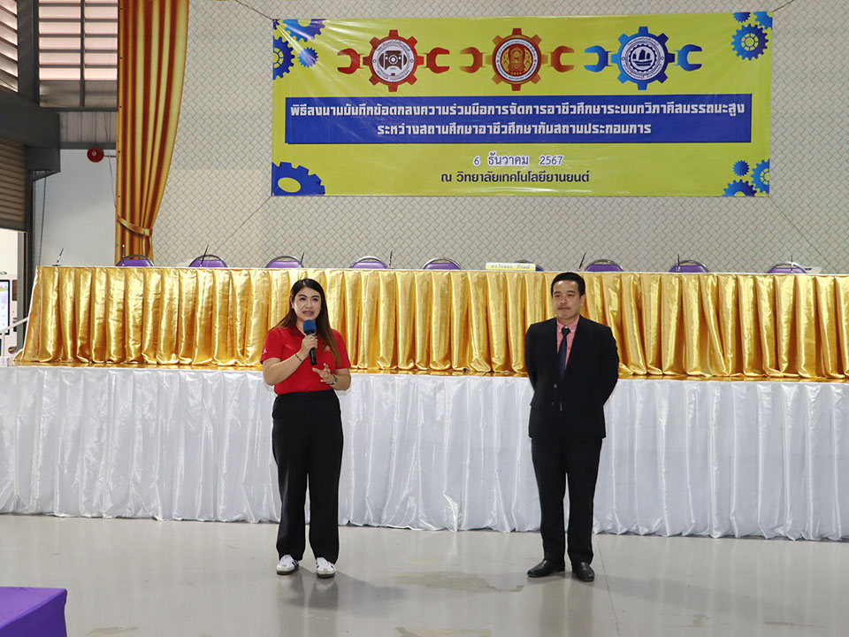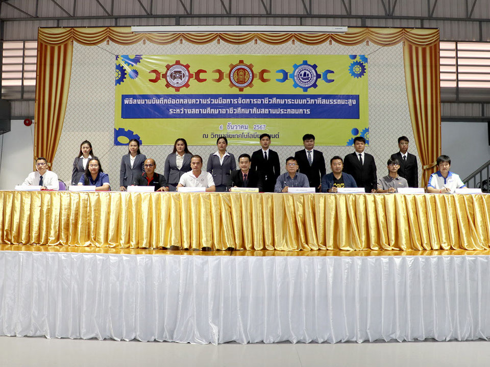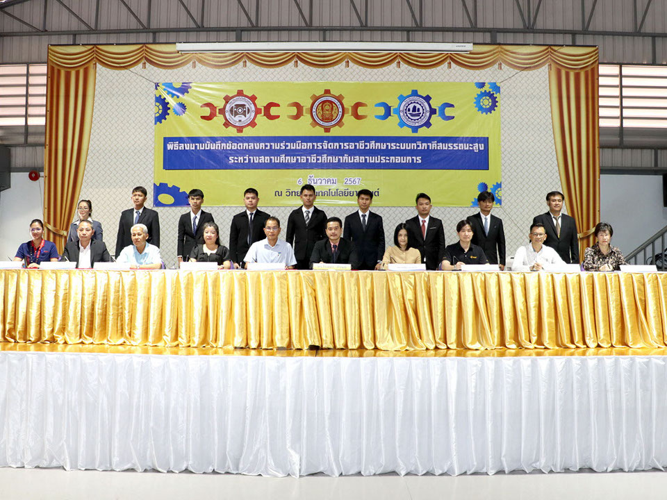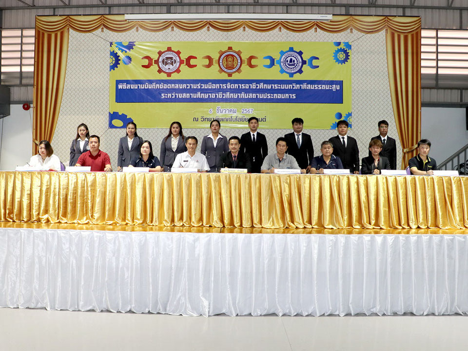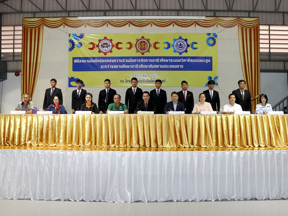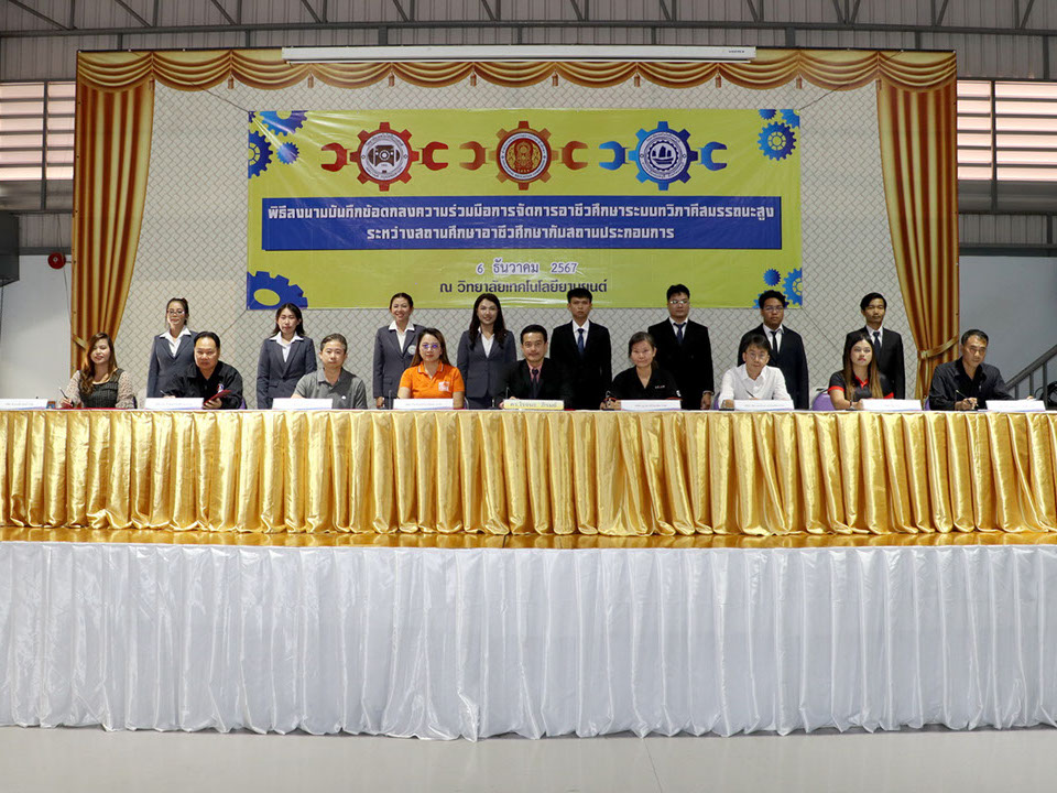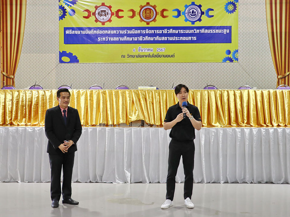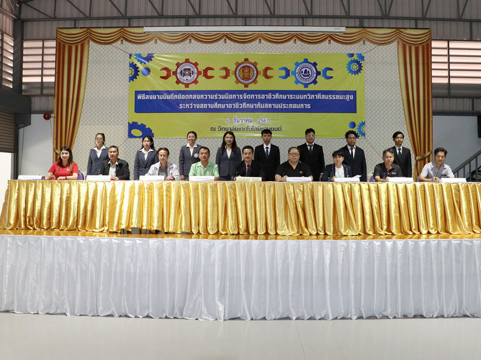 ผู้บริหาร / ตัวแทน / ผู้จัดการ สถานประกอบการ ผู้อำนวย ดร.โรจนะ ภิรมย์ ลงนามบันทึกข้อตกลงความร่วมมือการจัดการอาชีวศึกษาระบบทวิภาคี เมื่อวันที่ 6 ธันวาคม 2567
