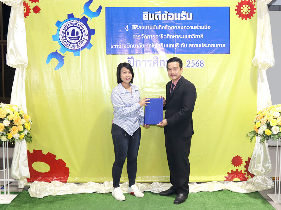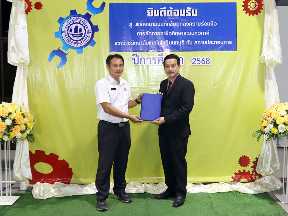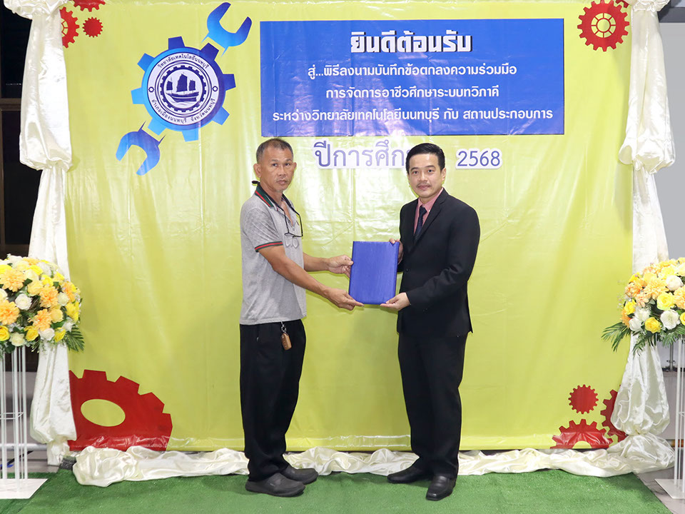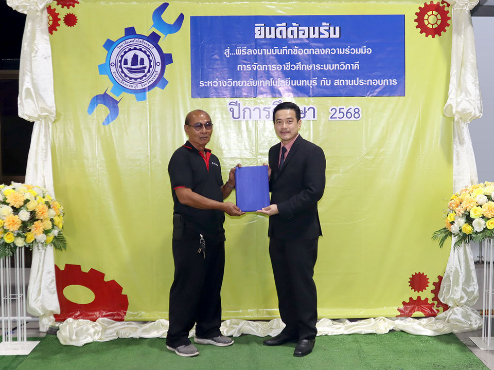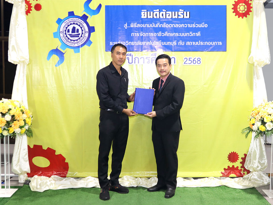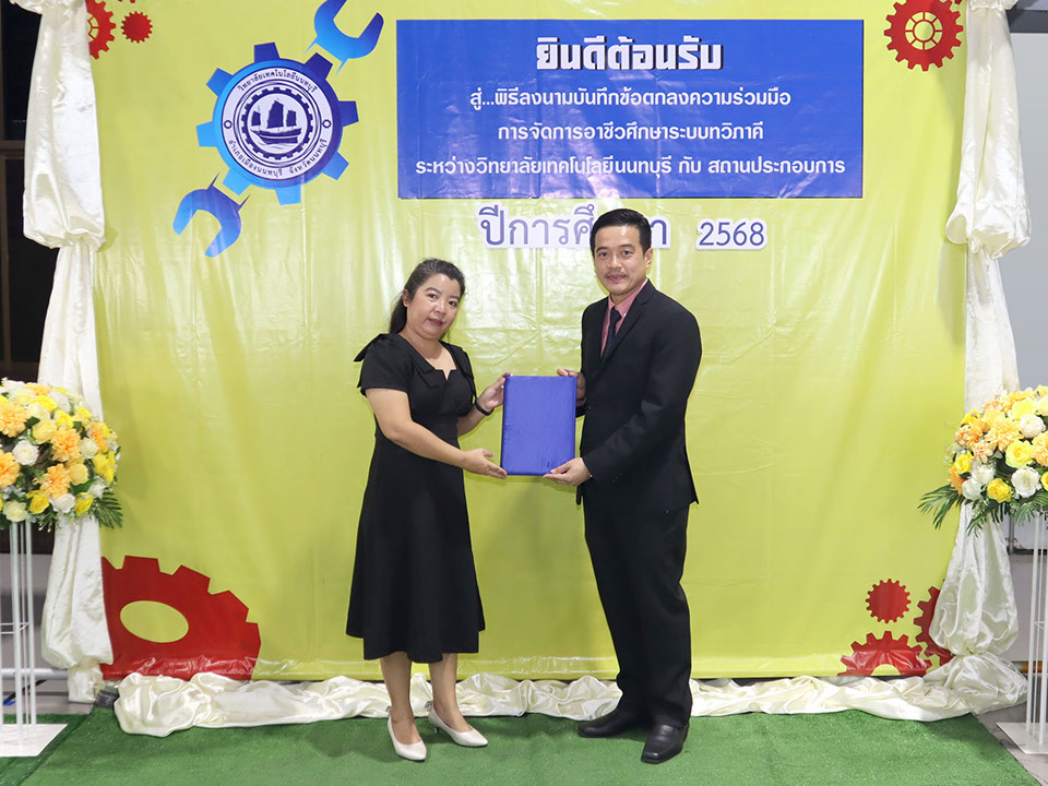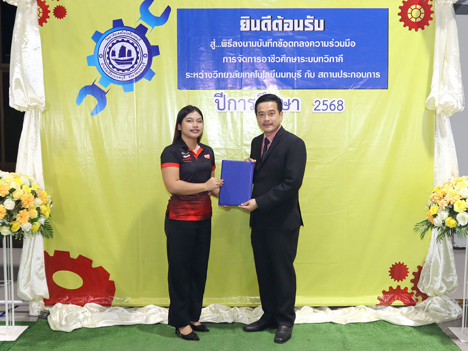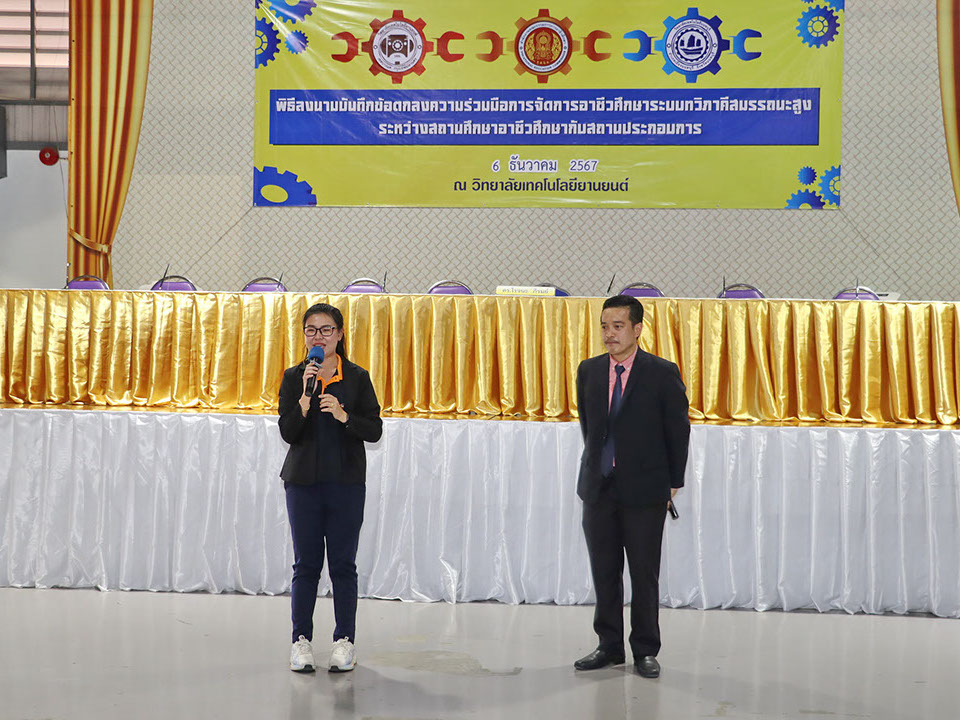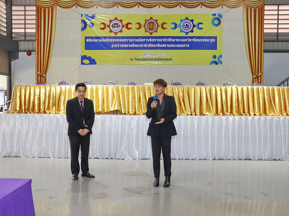 ผู้บริหาร / ตัวแทน / ผู้จัดการ สถานประกอบการ ผู้อำนวย ดร.โรจนะ ภิรมย์ ลงนามบันทึกข้อตกลงความร่วมมือการจัดการอาชีวศึกษาระบบทวิภาคี เมื่อวันที่ 6 ธันวาคม 2567