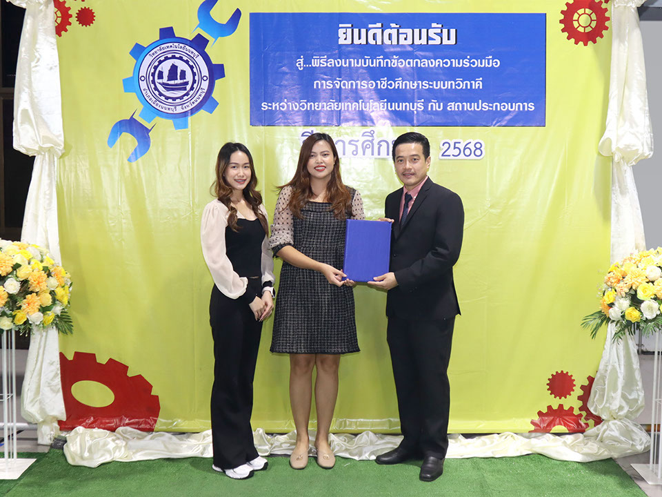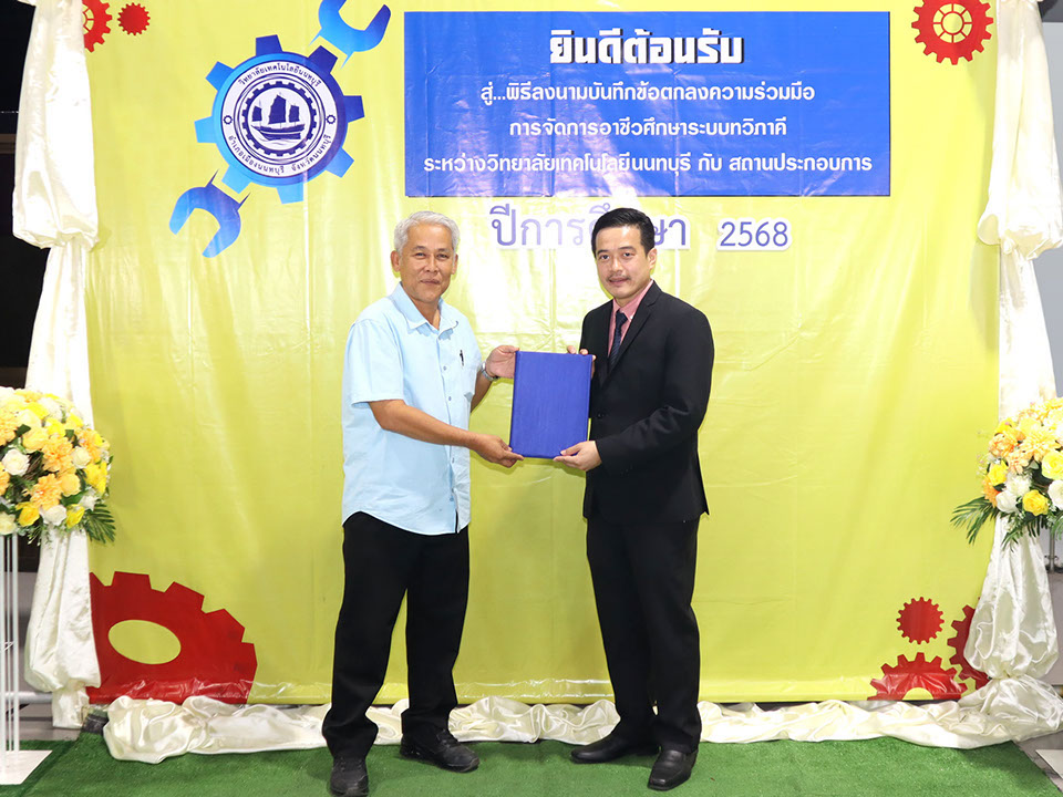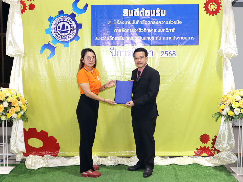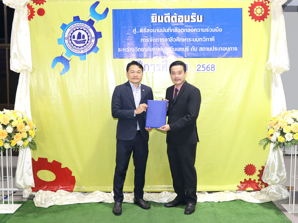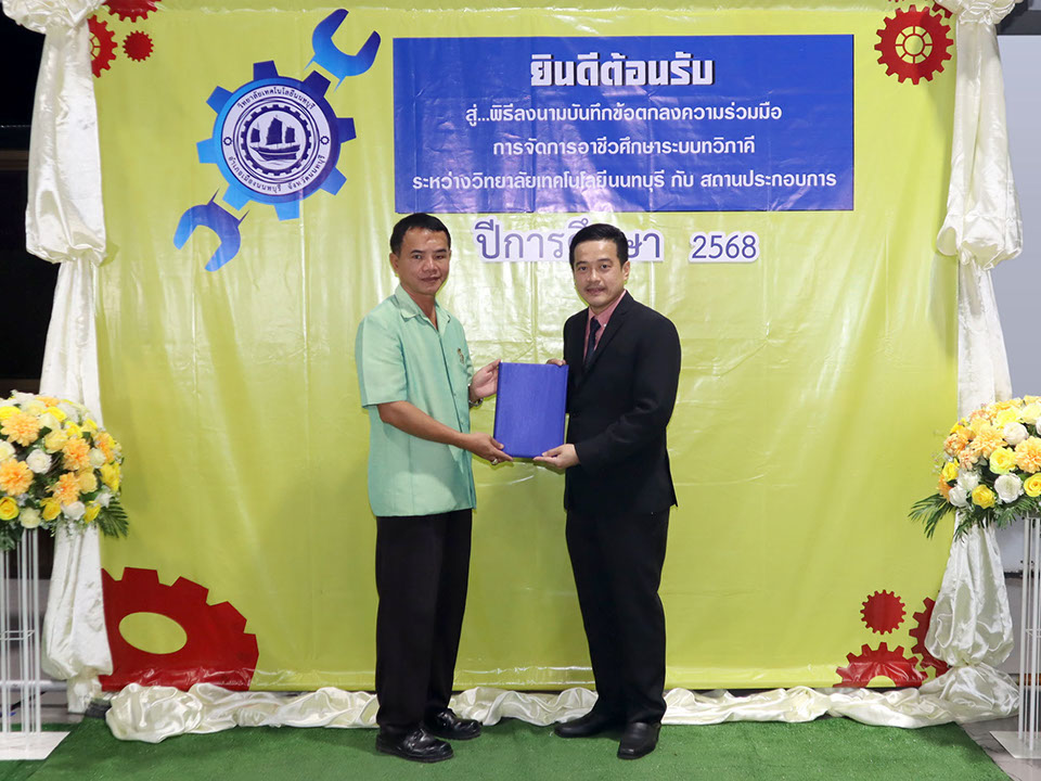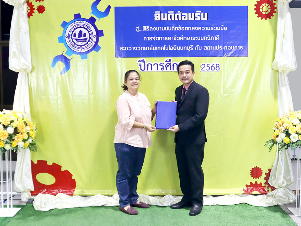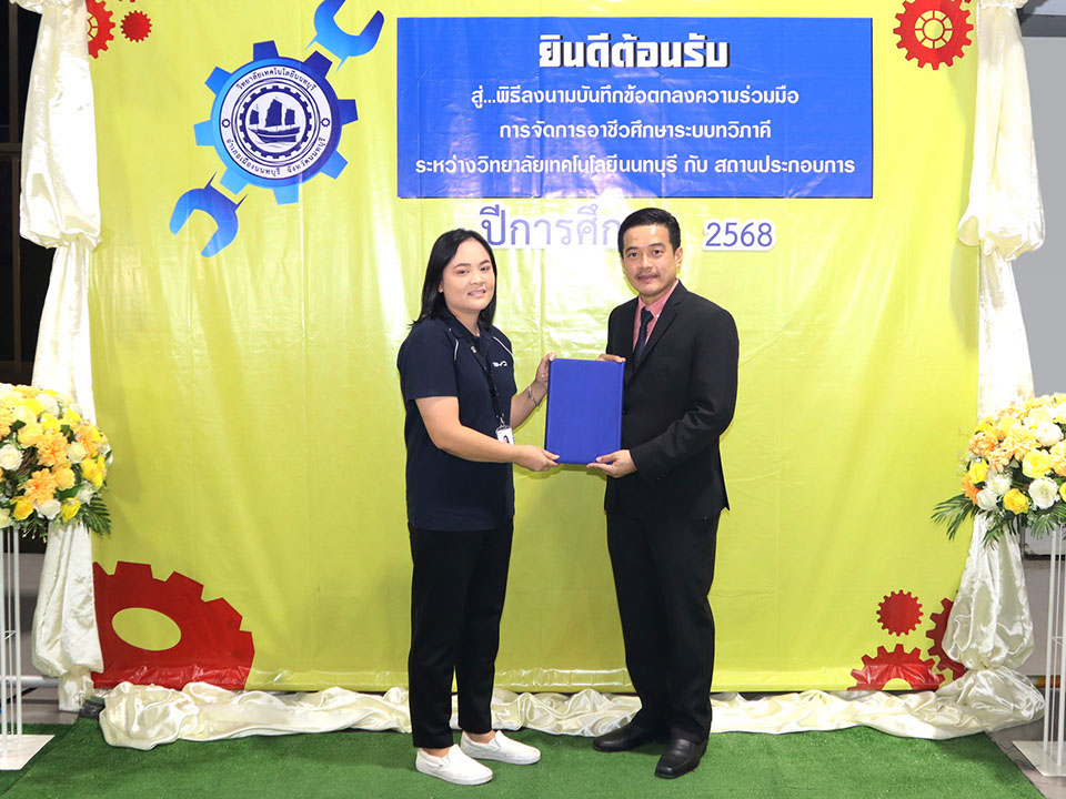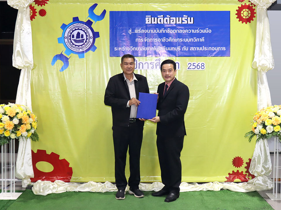 ผู้บริหาร / ตัวแทน / ผู้จัดการ สถานประกอบการ ผู้อำนวย ดร.โรจนะ ภิรมย์ ลงนามบันทึกข้อตกลงความร่วมมือการจัดการอาชีวศึกษาระบบทวิภาคี เมื่อวันที่ 6 ธันวาคม 2567