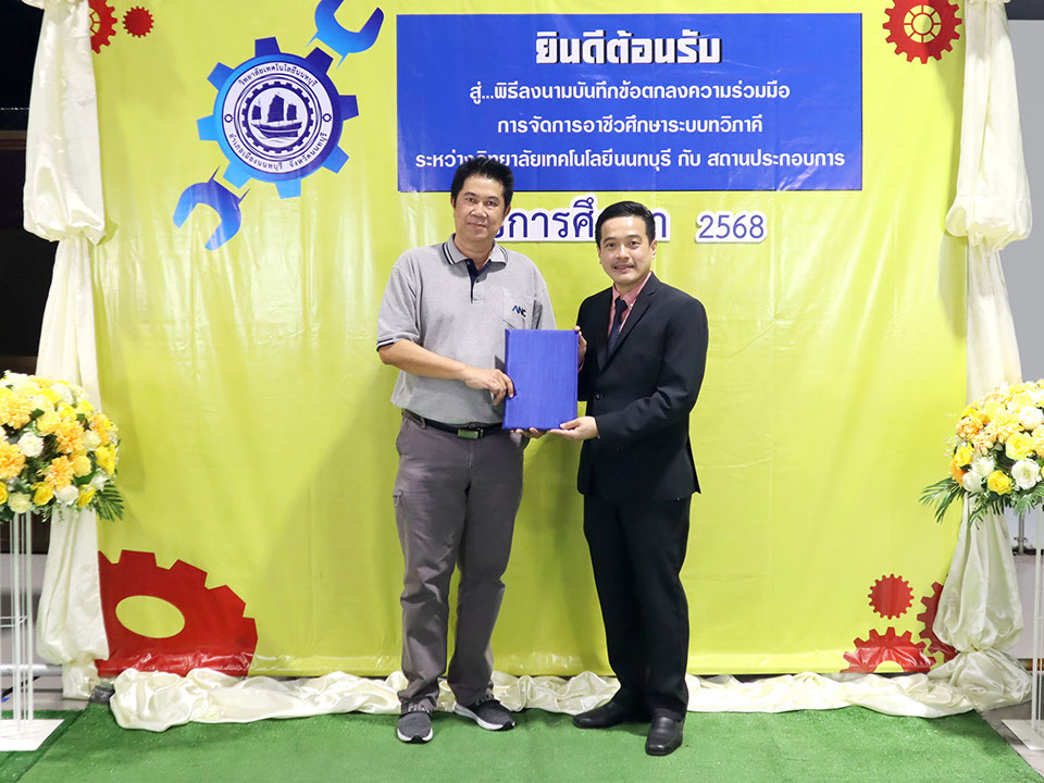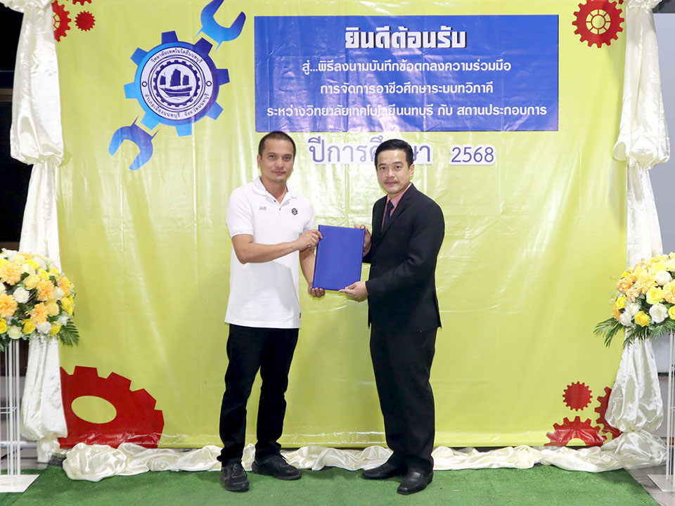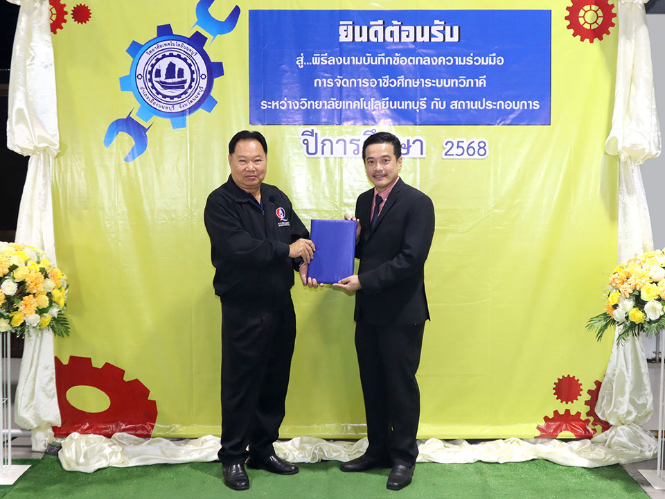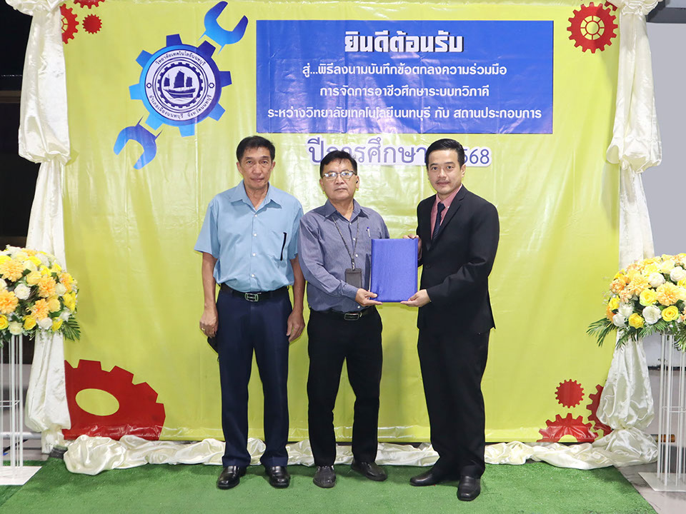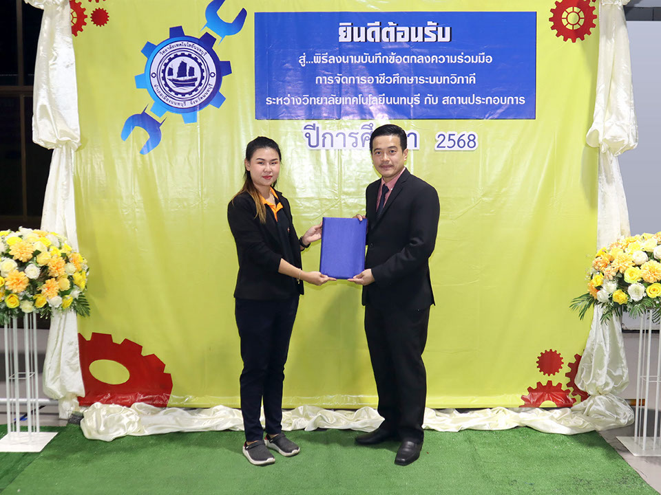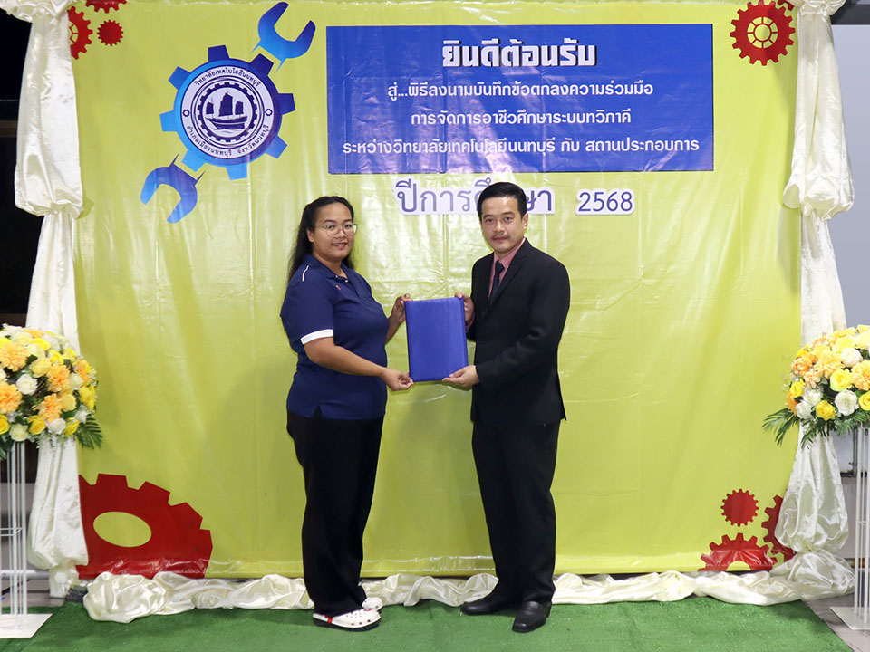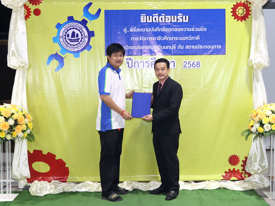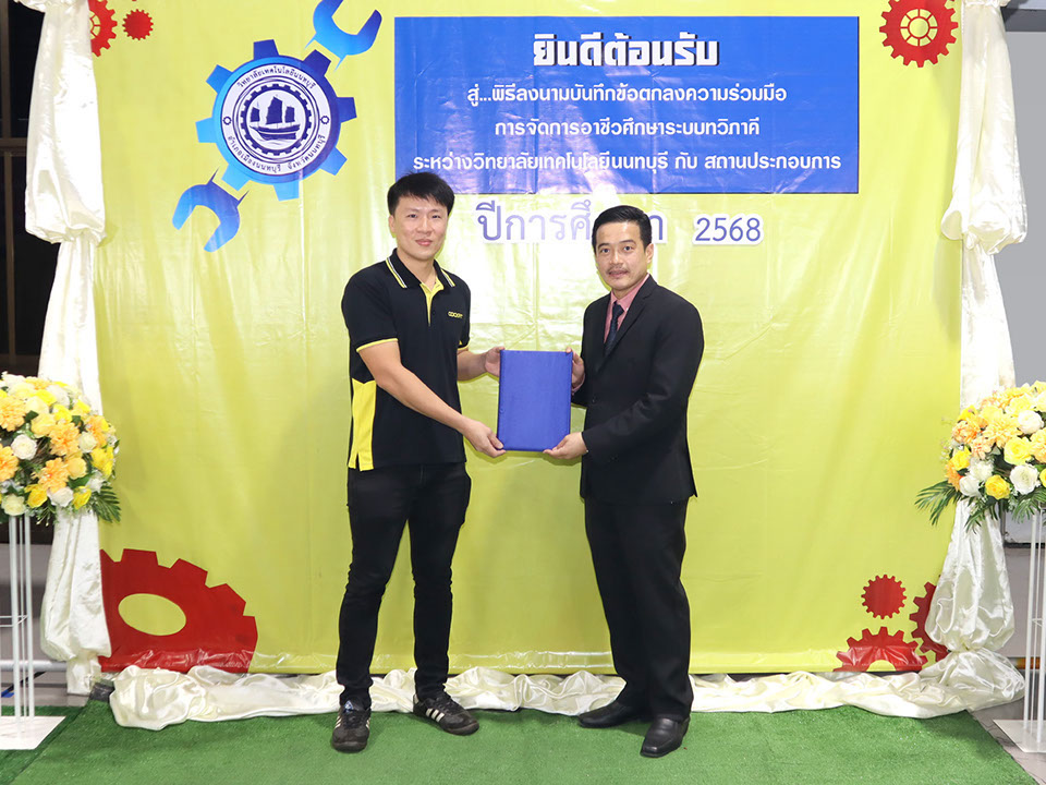 ผู้บริหาร / ตัวแทน / ผู้จัดการ สถานประกอบการ ผู้อำนวย ดร.โรจนะ ภิรมย์ ลงนามบันทึกข้อตกลงความร่วมมือการจัดการอาชีวศึกษาระบบทวิภาคี เมื่อวันที่ 6 ธันวาคม 2567