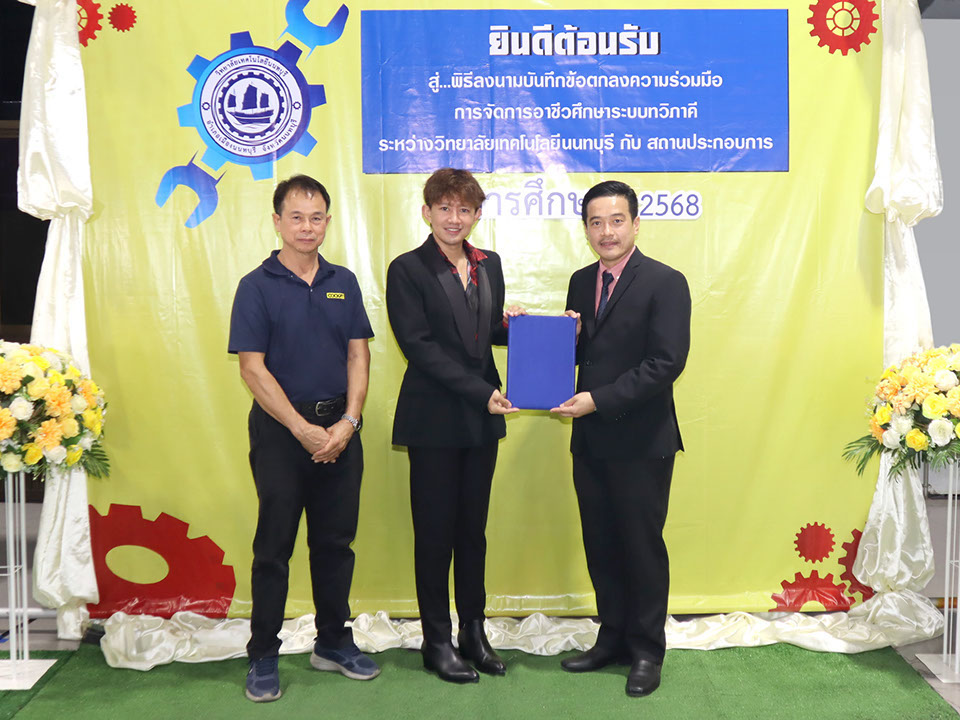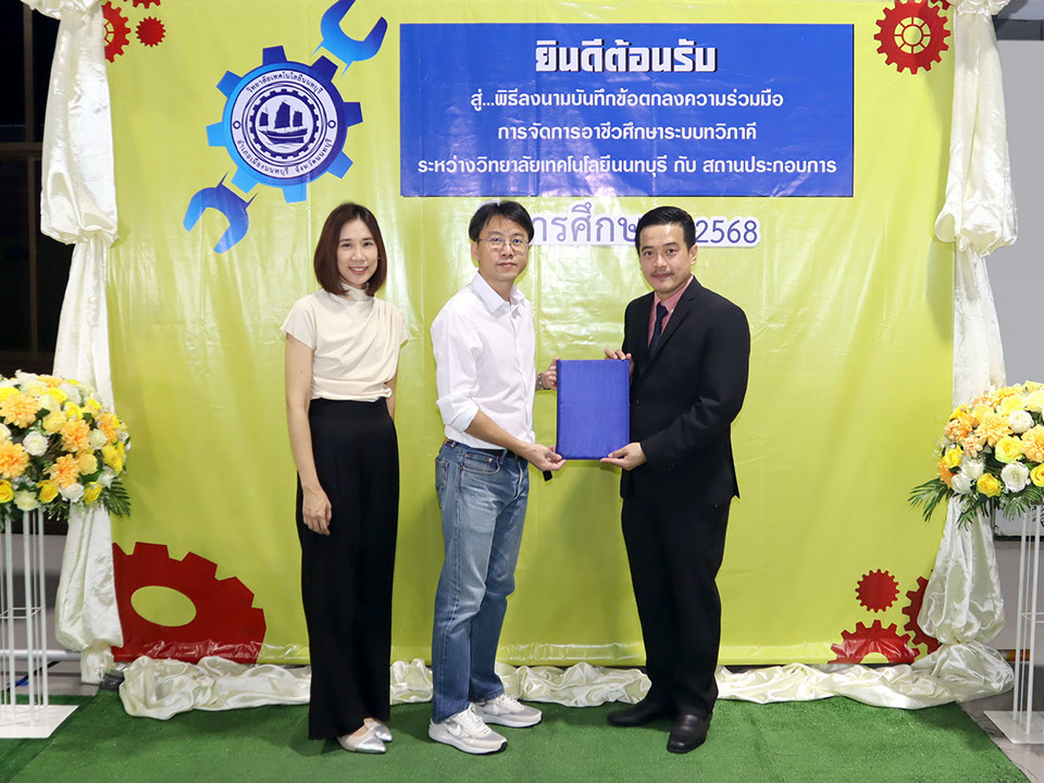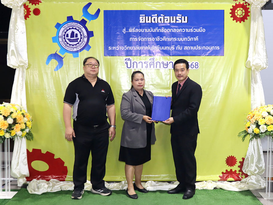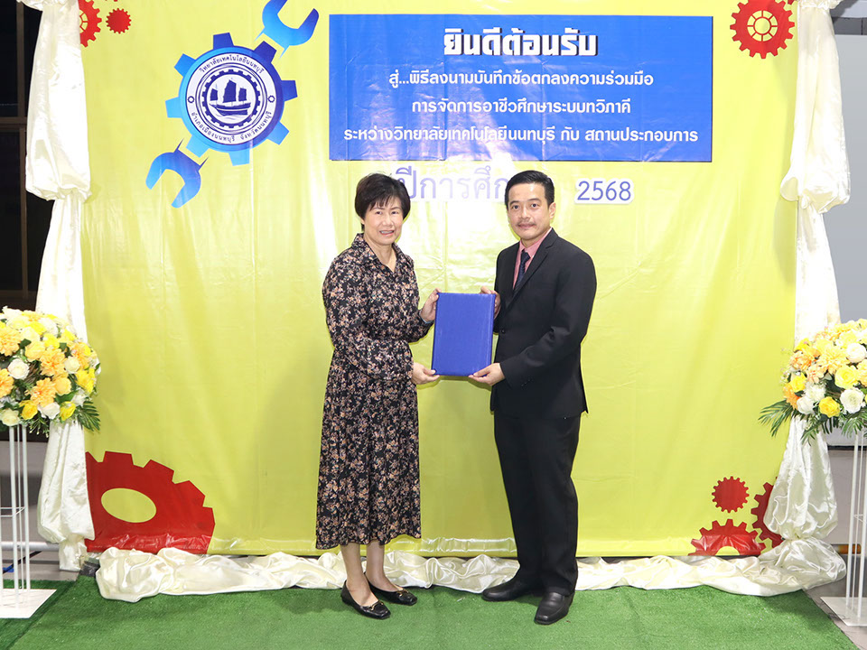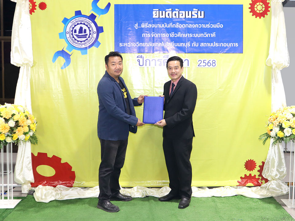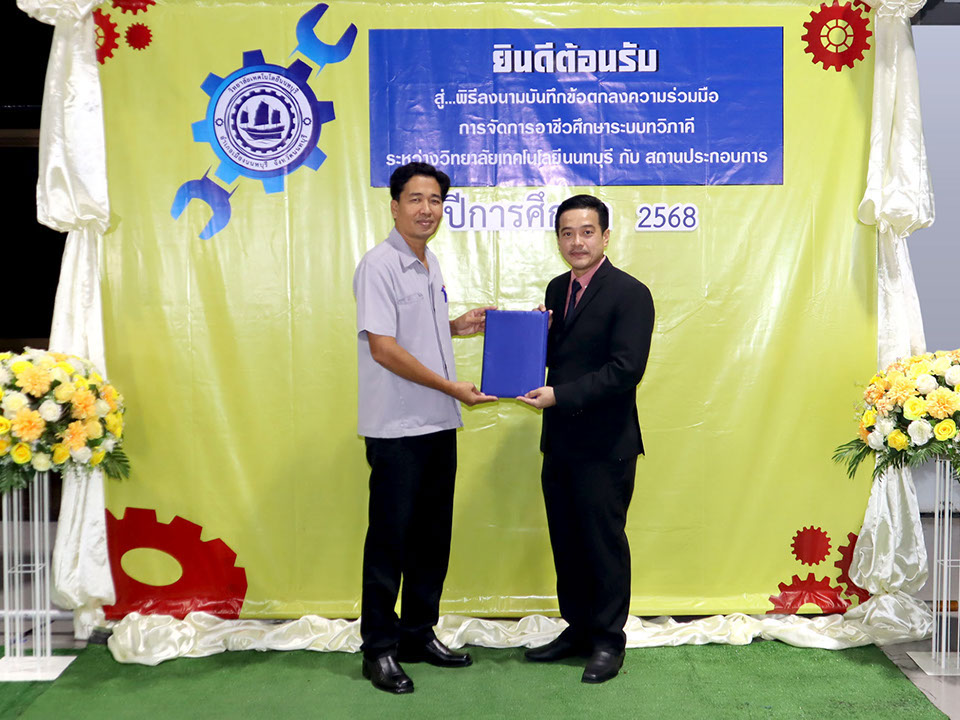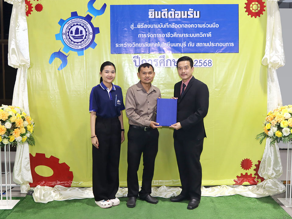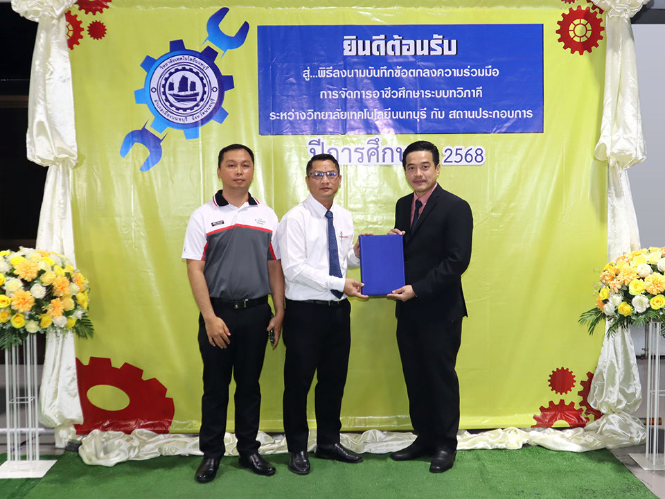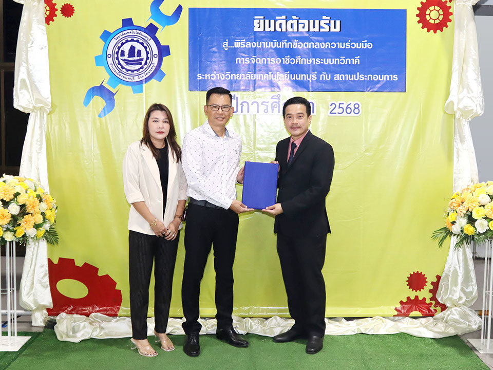 ผู้บริหาร / ตัวแทน / ผู้จัดการ สถานประกอบการ ผู้อำนวย ดร.โรจนะ ภิรมย์ ลงนามบันทึกข้อตกลงความร่วมมือการจัดการอาชีวศึกษาระบบทวิภาคี เมื่อวันที่ 6 ธันวาคม 2567