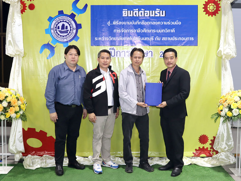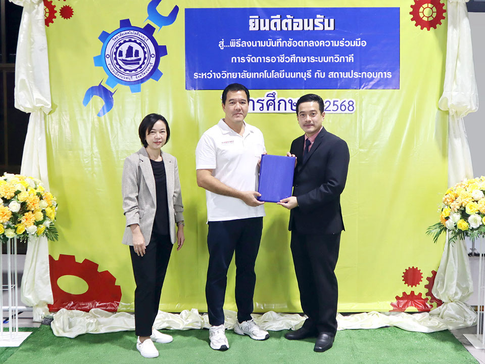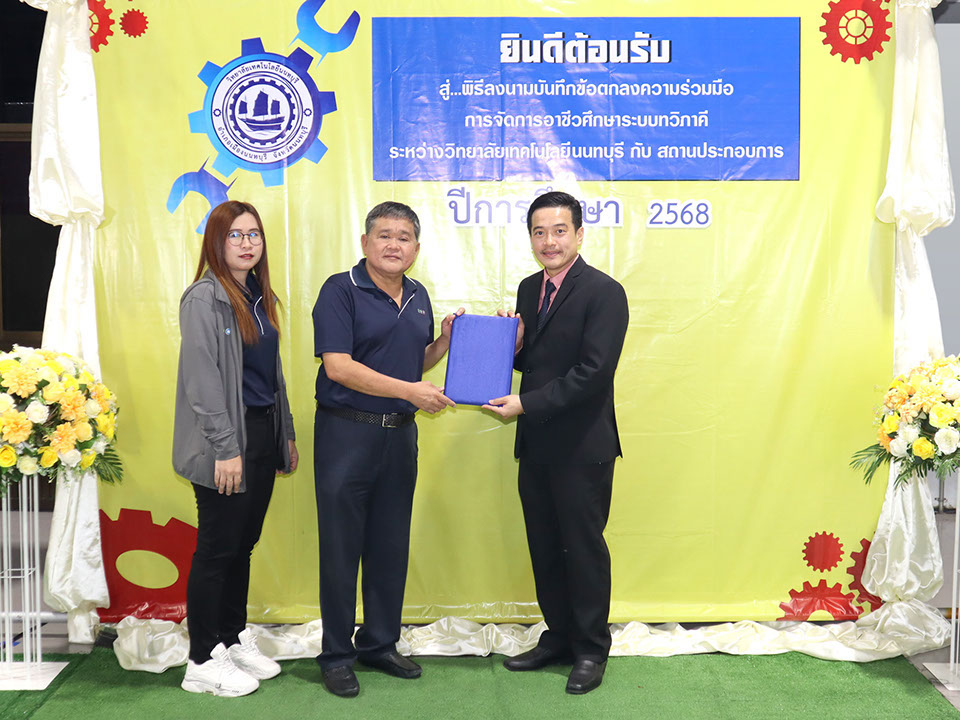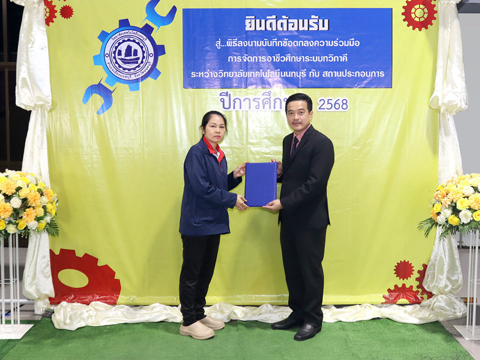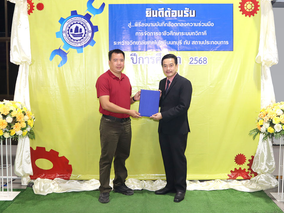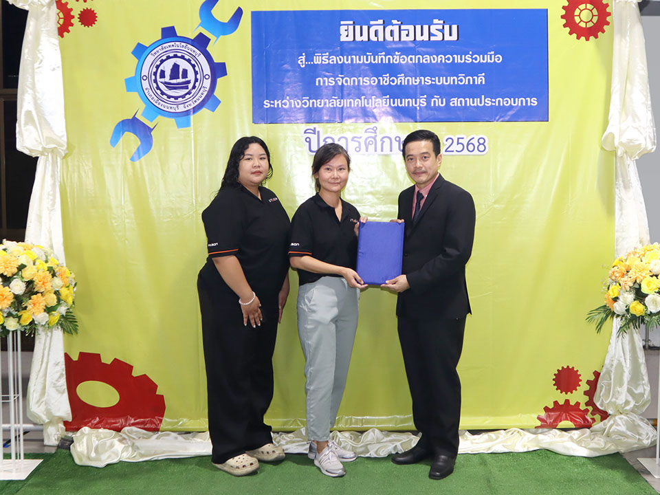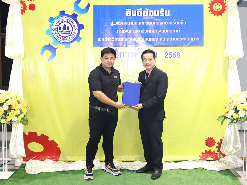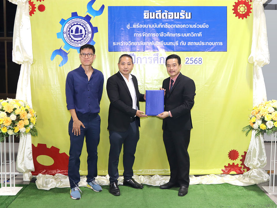 ผู้บริหาร / ตัวแทน / ผู้จัดการ สถานประกอบการ ผู้อำนวย ดร.โรจนะ ภิรมย์ ลงนามบันทึกข้อตกลงความร่วมมือการจัดการอาชีวศึกษาระบบทวิภาคี เมื่อวันที่ 6 ธันวาคม 2567